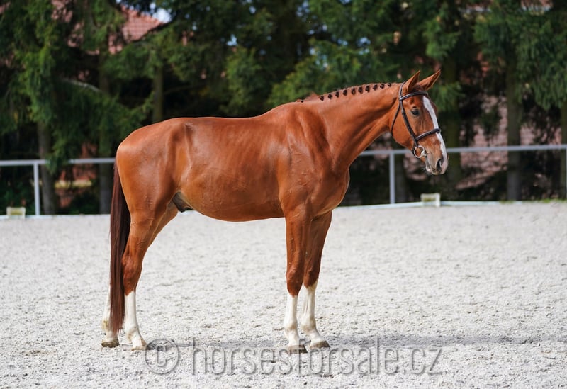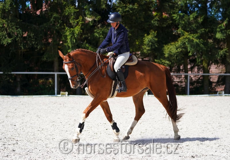 LEON - lovely hunter prospect with a lot of scope Leon is a cute youngster with lovely jump and very nice brain, he came to training recently, but could already pass his show debut. He is very smart, not looky or spooky. Leon knows lead changes, would perfectly suit for hunter ring, shows in freejumping enough quality to jump higher in the future, could make a nice jumper or equitation horse as well. Sound, correct, x-rays can be done upon request, comes directly from breeder’ s hand. Price range 20-30.000€, More information or videos under: +420 602 862 723 https://youtu.be/LVYWjFA8AoY https://youtu.be/mjdoFaj58Z8 Born: 2021, Height: 175 cm, Pedigree: El Barone x Zirocco Blue VDL Location: 1,5 hour from Prague, Czech republic, Central Europe. *** more horses on my website www.horsesforsale.cz ***