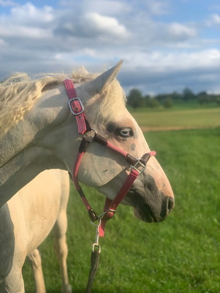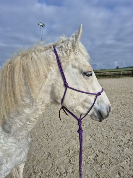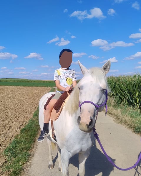 Nous vendons notre jeune jument Curly, croisement entre un Curly Horse et un Paint Horse. Sa taille actuelle est d'environ 147 cm, elle est pieds nus. En hiver, elle est complètement bouclée, tandis que son pelage d'été est lisse, seule sa crinière et sa queue restent toujours bouclées. Elle a eu beaucoup de temps pour se développer physiquement. Depuis environ un an, je travaille avec elle au sol selon la méthode Parelli. Elle coopère très bien une fois que l'on a clarifié qui mène l'autre. Casey n'est pas une monture exclusivement destinée aux enfants. Elle demande toujours ce qu'il faut faire et peut être plutôt dominante envers l'humain si celui-ci ne sait pas s'affirmer. Une fois qu'elle a gagné sa confiance et son respect, elle travaille merveilleusement bien. Elle est courageuse et intrépide en extérieur, passe dans l'eau, sur des ponts, connaît la circulation, les chiens, les tracteurs, etc. Le soin des sabots et le transport en van ne posent aucun problème. Elle est vendue en l'état, elle connaît la selle et le poids du cavalier, mais n'a pas encore été montée en selle ! Casey est avec nous depuis environ 3,5 ans. Avant cela, elle a passé ses deux premières années de vie dans une alpage. Nous la vendons uniquement car elle ne s'harmonise malheureusement pas avec ma fille et elle est devenue trop petite pour moi. Nous recherchons une place où elle pourra continuer à progresser. De plus, elle sera uniquement confiée en paddock avec accès à une pâture suffisante.
