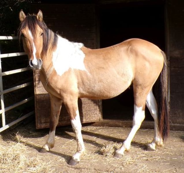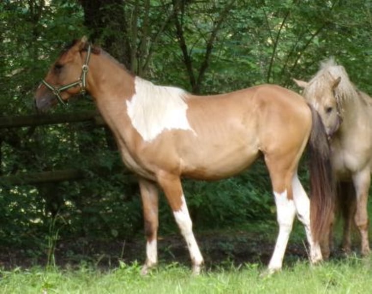 Nuestro chico es hijo de una yegua Curly Foxtrotter y un semental Paint, y debería alcanzar una altura final de 1,48 - 1,50 m. Es un compañero amigable, curioso y muy sociable, y ahora está en la edad ideal para comenzar su entrenamiento. Ha crecido en un grupo en un establo abierto y actualmente está en un grupo de machos. Se lleva bien en la manada y ocupa un rango medio. Ya está deseando encontrar un bonito hogar y vivir muchas aventuras.