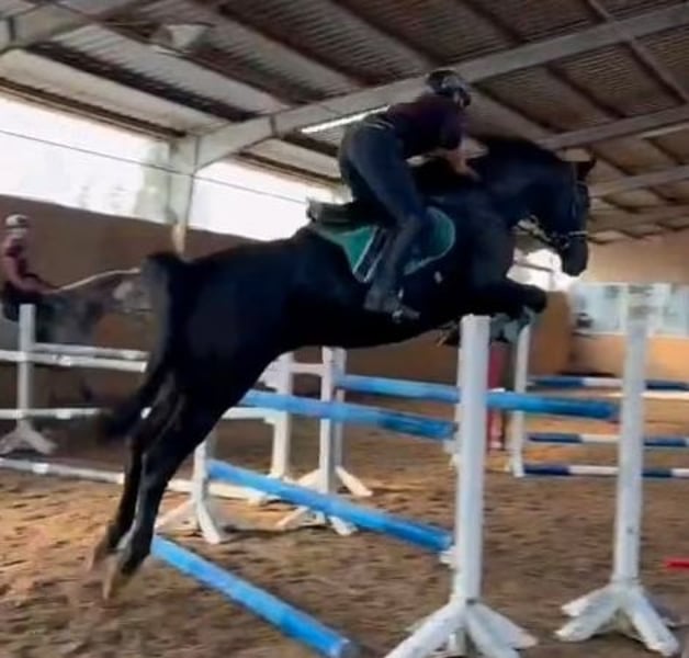 Vendo elegante y elegante yegua de Pura Raza Danesa, ideal para jinetes de salto. Esta hermosa yegua de color marrón oscuro nació en 2014 y destaca por su impresionante presencia y su talento en el salto. Con una altura de 1,68 m, ofrece la medida perfecta para jinetes ambiciosos que buscan un compañero fiable para la competición. Es de carácter fuerte, aprende con rapidez y demuestra una técnica de salto excelente en el recorrido. Su carácter amistoso y abierto la convierte en una compañera agradable durante el entrenamiento y en las competiciones. Si está interesado o tiene alguna pregunta, no dude en contactarme. ¡Agende una cita para visitarla y compruebe por sí mismo el talento de esta yegua de salto! ¡Pronto habrá más fotos y videos!