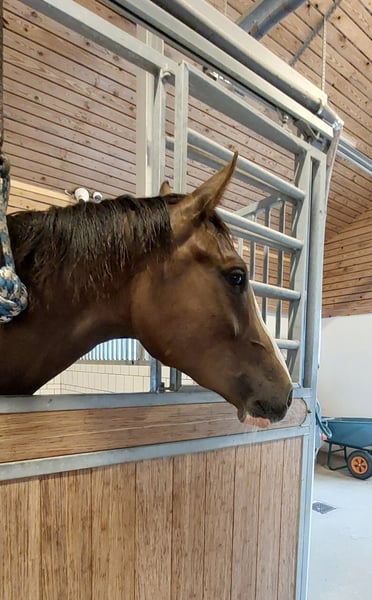 DRESSUURPAARD Wil je zelf je toekomstige dressuurpaard opleiden vanaf het begin? Dan is Belicia een goede keuze voor een verstandige, knappe jonge merrie met drie goede en ruime gangen, die al zeer klaar lijkt voor de taak. Ze is afstammend van de dubbele Fløjhingst Be Sure, met de Grand Prix-hengsten Benicio en Belissimo M als ff. en fff. en ff. respectievelijk. Aan moederskant komen de Grand Prix-hengsten Blue Hors Don Olymbrio en Glock's Romanov, als mf. en mmf. In juli/augustus heeft ze professionele training gehad in verband met haar tweede keuring bij DV. Daarna kreeg ze een goede beoordeling en goede eigenschappen mee voor de toekomst. In de merrielijn, "ALLERWELTSFRAU, Hannover Stutenstamm 4192002, Schridde 780", staan alle merries ingeschreven in het hoofdstamboek, met een overgrootmoeder die een staatsprijswinnares is in de Duitse OLD. In de lijn zitten A- en B- dressuurpaarden, en enkele hiervan hebben de geschiktheidstest succesvol doorstaan. Ze wordt dagelijks verzorgd en is in handen. Ze gaat goed in transport en is makkelijk te laden. Ze wordt overdag buiten gereden en ’s nachts in de stal gezet. Ze beschikt over een rood DV-paspoort met volledige pedigree voor de fokkerij. Verwachte hoogte: 1,72 m. Kleur: Donkervosserig. FFS vrij. Inbreeding: 0,07. Verkeerskeuring en verzekerd zonder opmerkingen, geldig tot eind april 2024. Algeheel een comfortabele, goed gevoede en gezonde 2-jarige merrie met een goede uitstraling en een zelfverzekerd temperament.