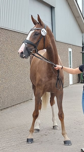 DRESSAGE SUBJECT. Do you want to shape your future dressage horse yourself from the start? Then Belicia is a good bet for a sensible, handsome young horse with 3 good and spacious gaits, which already seems very ready for the task. She is by the double Fløjhingst Be Sure with the Grand Prix stallions Benicio and Belissimo M as ff. and fff respectively. On the dam's side are the Grand Prix stallions Blue Hors Don Olymbrio and Glock's Romanov as mf. and mmf respectively. In July/August she was in professional training in connection with 2 years election in DV. She subsequently received a fine assessment and good characteristics to take home. In the mare line, "ALLERWELTSFRAU, Hannover Stutenstamm 4192002, Schridde 780", all mares are Main Stud Book mares with a great-grandmother who is a state prize winner in the German OLD. There are A and B horses in dressage in the line and several of them have passed the suitability test. Has been taken care of with everything and is in hands every day. Runs well in transport and has been easy to load. Goes out during the day and stands in the stall at night. Has red DV horse passport with full pedigree for breeding. Expected height 1.72 cm. Color: Dark Fuchs red FFS free. Inbreeding: 0.07 Trade examined and insured without remarks at the end of April 2024. Overall a comfortable and well-fed healthy 2-year-old mare with a good expression and a confident temperament.