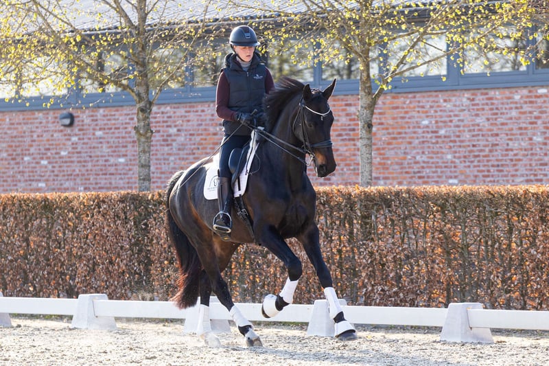 Dancing Queen est la sœur utérine de Heiline's Danciera, la jument olympique montée par Carina Cassøe Krüth lors des Jeux Olympiques de Tokyo, qui est devenue en 2023 la cinquième meilleure jument de dressage au monde ; ainsi que du étalon Revolution — ancien Champion du Monde des Jeunes Chevaux, médaillé d’or et Étalon de l’Année du Selle danois en 2025 — lui conférant un pedigree basé sur des performances de haut niveau et une aptitude au dressage éprouvée. Lors de son test de 3 ans, Dancing Queen a obtenu 780 points, avec plusieurs notes 8, lors de la sélection pour le stud-book danois Warmblood. C’est une jument grande, bien construite, avec trois allures puissantes, un bon état d’esprit et un tempérament fiable. Actuellement en développement vers le niveau Small Tour, elle réalise des changements de pieds très faciles, avec des changements simples, expressifs et en progression, malgré le fait qu’elle porte elle-même un poulain à 4 ans, ce qui explique seulement trois années d’entraînement, illustrant sa progression rapide et son potentiel de développement futur. Elle a également produit avec succès de magnifiques poulains par transfert d’embryons durant sa période d’entraînement, étant très fertile et facile à saillir. C’est un cheval puissant, avec un avenir prometteur tant pour la compétition que pour la reproduction. Prix réduit, car vente nécessaire en raison de la grossesse de la cavalière. Située à Kalmthout, Belgique Plus d’informations et vidéo sur demande