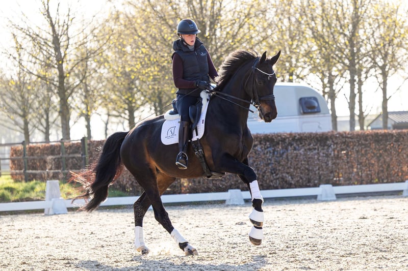 Dancing Queen ist eine Halbschwester von Heiline's Danciera, der Olympiastute, die von Carina Cassøe Krüth bei den Olympischen Spielen in Tokio geritten wurde und 2023 als das fünftbeste Dressurpferd der Welt eingestuft wurde; und von dem Hengst Revolution - ehemaliger Weltmeister der jungen Pferde, Goldmedaillengewinner und dänischer Warmbluthengst des Jahres 2025; was ihr ein Pedigree verleiht, das auf höchster Leistung und bewährter Reitbarkeit basiert. Bei ihrer 3-jährigen Prüfung erhielt Dancing Queen 780 Punkte mit mehreren 8ern in der dänischen Warmblutzulassung. Sie ist eine große, gut gebaute Stute mit 3 großen Gängen, einer guten Einstellung und einem zuverlässigen Temperament. Derzeit arbeitet sie auf das kleine Tour-Niveau hin und hat sehr einfache fliegende Wechsel bis hin zu 2er Wechseln, die sauber, ausdrucksstark und mühelos entwickelt sind, obwohl sie selbst mit 4 Jahren ein Fohlen trägt und somit erst seit 3 Jahren im Training ist, was ihren schnellen Fortschritt in der Ausbildung und Raum für weitere Entwicklung zeigt. Sie hat auch erfolgreich schöne Fohlen durch Embryotransfer während des Trainings produziert und sich als sehr fruchtbar und leicht züchten lassen erwiesen. Sie ist ein großes, kraftvolles Pferd mit einer vielversprechenden Zukunft sowohl im Sport als auch in der Zucht. Offen für Angebote, da sie aufgrund der Schwangerschaft der Reiterin verkauft werden muss. Standort: Kalmthout, Belgien Weitere Informationen und Videos auf Anfrage erhältlich.