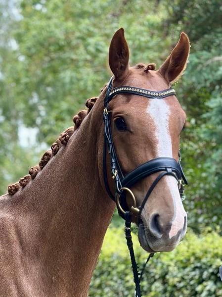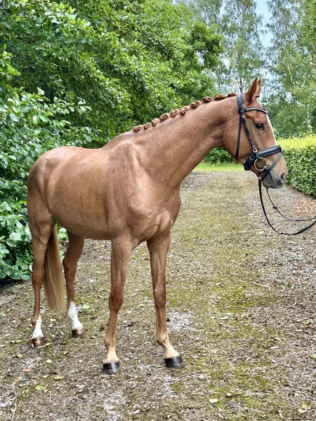 Specter is a promising and well-developed young horse with a fantastic temperament and a unique red coat with white ticking. He is well-balanced, seeks contact, and is relatively easy to handle in all situations, considering his age. He moves rhythmically, with elasticity, good energy, and forwardness – making him a clear prospect for future championships and sport. Specter was started under saddle by Mike Mihaita in the spring. Since then, he has had a growth break over the summer and has not been ridden since the initial backing. He was gelded in April. A 2-year-old brother by Highfive Fuglsang is also available for viewing. He has an impressive pedigree and comes from the successful "Engsøgaard line", bred by Danish breeding icons Knud and Margit Nielsen, Ølsted. Dam: Barilla was first presented for mare grading with Specter at foot in 2022. Barilla’s brother, Fürstenblick by Fürstenball, competed internationally in dressage under Anne Troensegaard in 2019 and 2020. He was later sold to Emilie Balling Nissen, a consistent member of the top tier of Danish youth dressage, who has represented Denmark at several international competitions. (Video of Anne and Fürstenblick is available.) Granddam: Bernadett by Bernstein, DVH 696, is a bronze medal mare (BRDH). Great-granddam: Barbara by Rambo, DVH 373, is an elite silver medal mare (ESRDH). She is also the dam of the bronze medal mare Brokade and the gold medal mare Bolivia. Great-great-granddam: Ballet by Waldstern, DE333330300280, is an elite mare (EDH). Ballet is the dam of the licensed stallion Barolo V, DVH 1048, and the elite mare Bolette V. Great-great-great-granddam: Bianca by Allegro, Hann314717172DH, is also an elite mare (EDS). You can explore more of his pedigree here (please note that as it is a German database, not all offspring may be registered): 🔗 https://horsetelex.de/horses/family/1511456 Specter is offered for sale directly by the breeder to the right home, who is looking to further educate a quality young horse with both talent and a good temperament. 📜 Pedigree on HorseTelex: https://www.horsetelex.com/horses/pedigree/2358046/specter-hkh Contact me on Whatsapp :)