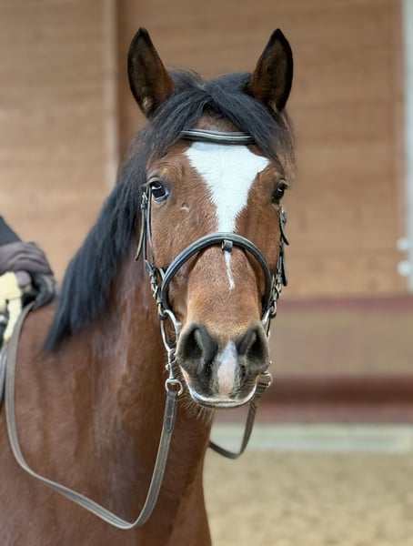 "Bobby Brown" ist ein 5-jähriger, 1,55m großer Wallach. Er wurde in den letzten Monaten von mir angeritten und zeigt sich unter dem Sattel motiviert und aufmerksam. Derzeit wird er Schritt, Trab und Galopp in der Halle geritten und macht erste kleine Sprünge mit dem Reiter. Dies muss aber noch gefestigt und weiter ausgebildet werden - eine schöne Grundlage ist vorhanden. Vom Charakter her ist Bobby ein absolut lieber und freundlicher Kerl. Zudem überzeugt er durch tolle Grundgangarten in welchen er toll an den Hilfen steht. Er ist derzeit jedoch kein Anfängerpferd, da er noch in der Ausbildung steht und Sicherheit sowie konsequente, ruhige Hilfen benötigt. Anfragen daher bitte nur mit ausreichender Kenntnis. Was er bereits kennt: - Gelassenheitsübungen mit Stofftieren, Plane und Dualgassen: macht er entspannt und gelassen mit - brav an der Longe - Hunde, Hühner, Traktoren sind Alltag - kurze Spaziergänge - Freispringen, erste Stangenarbeit sowie Sprünge - Ansätze der Anlehnung bzw. generell Stellung & Biegung Aufgewachsen ist Bobby in einer großen Herde auf riesigen Koppeln. Bei mir steht er in einer Box mit Paddock und tagsüber entweder mit seinen Jungs (4 Wallache) zum spielen oder mit meiner anderen Stute draußen. Er bringt die besten Voraussetzungen mit, um mit Geduld und liebevoller Förderung ein richtig tolles Reit- oder auch Sportpferd zu werden. Ideal für jemanden, der Freude an der Ausbildung junger Pferde hat und ein freundliches, unverdorbenes Pferd sucht, das noch am Anfang steht aber sicher Potenzial und Arbeitswillen mitbringt. Eine kleine AKU ohne Befund von Ende 07 diesen Jahres liegt vor. Zur weiteren Ausbildung kann er gerne weiterhin bleiben. Preis steigt mit weiterer Ausbildung.