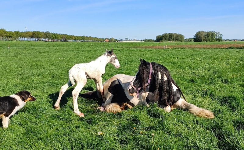 White Knight ist ein wunderschönes Hengstfohlen. Es wird voraussichtlich eine große Bemuskelung haben. Die erwartete Stockmaß liegt bei 1,60/1,65 m. Mutter Tinker. Vater Clydesdale, Stobilee Proclamer. Hat die erste Prämie erhalten und wurde Tagessieger bei der Zuchtprüfung des NSvT.