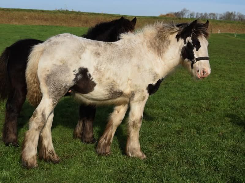 White Knight es un hermoso potro de semental. Se espera que alcance una altura de cruz de aproximadamente 1,60/1,65 m. Madre Tinker. Padre Clydesdale. Stobilee Proclamer. Obtuvo la primera premie y fue campeón del día en la inspección de NSvT.