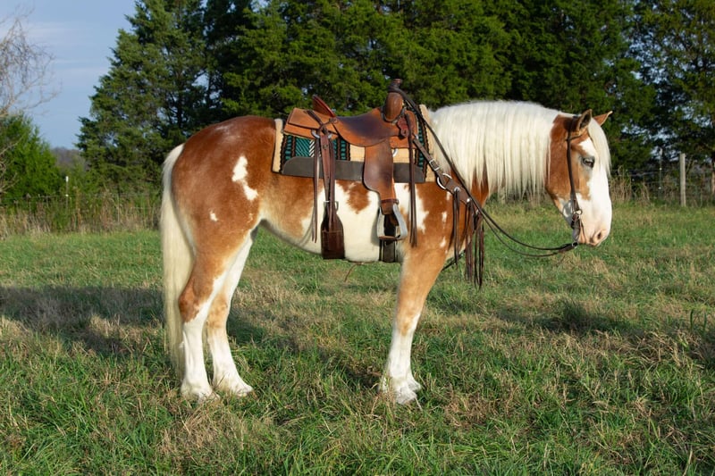 ONLINE AUCTION Place your bids at www.PlatinumEquineAuction.com Starting Bid $3500 Auction ends December 22nd, 2024 Need a new saddle? Check out White Rock Saddles on our website or Facebook! Talk about a big boned draft cross that rides and moves like a quarter horse! Daisy Mae is a 2020 draft cross mare standing 16hh. She is an absolute sweetheart and has an in your pocket personality. Daisy doesn’t have a mean bone in her body and truly wants to be your best friend. She stands for mounting, saddling, bathing, grooming, farrier etc. She loads and hauls well. She can be kept out in the field with other horses or in the barn in a box stall. Daisy picks up both her leads with ease and has a true one step short lope. She is soft in the bridle and works well off leg pressure. She has a soft and easy backup and a nice quick stop. She has been extensively trail ridden and crosses water, logs or any thing else in her path. Daisy has also been exposed to the arena obstacles and does them all. We have used her for ranch work also such as checking cows and repairing fences. Daisy can work all day and still keep a good attitude. One of the coolest things about Daisy is that she can also be drove. We have used her in the buggy and carriages. She is not scared of traffic. She was raised by the Amish and has been used in all types of farm machinery. Daisy has great ground manners and is not pushy. She is broke to flags, tarps, whips. Around our place she is always the one that gets picked first to do any job. Daisy is currently being trained to lay down on command and is coming along nicely. Daisy Mae lives in Greensburg Ky. Call Alex Pearl with any questions 270-234-4148. ONLINE AUCTION Place your bids at www.PlatinumEquineAuction.com Starting Bid $3500 Auction ends December 22nd, 2024 Need a new saddle? Check out White Rock Saddles on our website or Facebook!