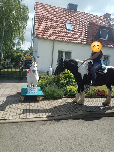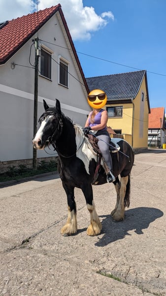 Magic´s Merida KEINE RATENZAHLUNG/KEIN TAUSCH/KEINE ZUR VERFÜGUNGSTELLUNG Bitte überlegen Sie vorher, ob die Zeit und die finanziellen Mittel auch zur Verfügung stehen, dies erspart uns Allen viel Aufwand. Zum Verkauf steht unsere wundervoll gezeichnete Premium-Drumhorse-Stute Magic´s Merida. Merida ist ins Stutbuch eingetragen und wurde mit dem Premium-Zertifikat der International Drumhorse Association ausgezeichnet. Merida überzeugt nicht nur durch ihre hervorragende Abstammung, sondern auch durch ihre Erscheinung. Zudem zeigt sie sich bewegungsstark mit schönen Gängen und gutem Schwung. Merida läuft Barhuf, ist ekzemfrei, ist regelmäßig entwurmt und geimpft. Merida ist sehr menschenbezogen, freundlich und lernwillig im Umgang. Merida ist verladefromm, schmiedefromm, zaunsicher, sie lässt sich geduldig anbinden, putzen, waschen und satteln. Merida wurde auf dem Platz in der Halle und im Gelände gearbeitet. Im Gelände braucht Merida klare Führung. Rassebedingt gilt sie als Gewichtsträger. Merida kam als Absetzer direkt vom Züchter zu uns. Sie wurde jungpferdegerecht aufgezogen. Derzeit steht sie im Offenstall in einer kleinen Herde. In den Sommermonaten steht Merida bei uns 24/7 auf den Weiden. Boxenhaltung kennt sie von den Ausbildungsställen. Merida kennt Straßenverkehr, landwirtschaftliche Maschinen und den Umgang mit anderen Tieren. Merida bringt keine Turniererfahrung mit. Zurzeit wurde Merida nicht gearbeitet und müsste entsprechend muskulär aufgebaut und angeschoben werden. Das angepasste Zubehör wird gern mit abgeben. Der Markenwesternsattel mit Bucking-Rolls, Filzpad und Lammfell-Sitzbezug wurde beim Fachmann Janin Radau Palo-Ranch gekauft. Im Weiteren sind Trense, Zaum, Halfter, Longe, Bodenarbeitsseil, Führstrick, verschiedene Decken, Putzbox und Verbrauchsmaterialien zur Pflege beim Zubehör dabei. Fotos vom Equidenpass werden auf Anfrage nachgereicht. Einer AKU spricht nichts entgegen. Wir freuen uns auf liebe, verantwortungsbewusste und erfahrene Menschen mit Herz und Pferdeverstand, denn die Entscheidung zum Verkauf fällt uns allen nicht leicht. Rasse: Drumhorse Geschlecht: Stute Alter: 7 Stockmaß: 1,75 m Farbe: Schecke Typ: Kaltblut Zuchtverband: national ZSSE und international IDHA Abstammung: Skalero x Barnahill Magic Star Ausbildungsstand: Bodenarbeitsausbildung nach Horsemanship durch Janine Deinert Westerntraining, Beritt durch Linda Rüchert EWU Thüringen, weitere Ausbildung durch angehende Trainerin C (nicht näher benannt) Weiteres: Teilnahme am mehrtägigen Dualaktivierungskurs nach Geithner bei Trainerin Karla Hoffmann Preis: 10.000 VB Bitte beachten Sie, dass es sich hier um subjektive Eindrücke handelt. Die genannten Eigenschaften beruhen auf meiner persönlichen Einschätzung und stellen keine zugesicherten Merkmale dar. In einer neuen Umgebung können Verhaltensweisen beeinflusst werden.