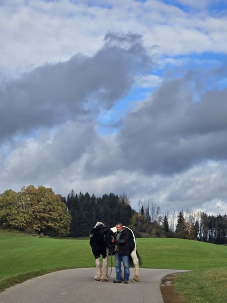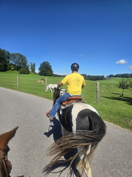 Wunderschöner Drum Horse Wallach – treuer Partner mit Herz Schweren Herzens suchen wir für unseren besonderen Wallach ein neues, liebevolles Zuhause. Er ist ein Drum Horse Wallach, 19 Jahre alt, 1,70 m Stockmaß, ein beeindruckender schwarz-weißer Schecke mit einem ganz besonderen Charakter. Er ist ein unglaublich liebevoller, ehrlicher und treuer Partner, der mit seinem Menschen durch dick und dünn geht. Er wurde sowohl schon englisch als auch zuletzt western geritten und ist durch seine ruhigen und sehr angenehmen Gänge außergewöhnlich gut zu sitzen. Vor unserer Zeit wurde er ein Jahr lang im Reiten mit Menschen mit Behinderung eingesetzt, was seine Geduld, Nervenstärke und sein ausgeglichenes Wesen unterstreicht. Unser Wallach wurde liebevoll, aber konsequent erzogen. Hat man einmal sein Vertrauen gewonnen, macht er mit seinem Menschen nahezu alles mit und ist ein absolut verlässlicher Partner. Auch weniger erfahrene Reiter fühlen sich auf ihm sicher – mein Mann, der kein geübter Reiter ist, wurde von ihm immer zuverlässig von A nach B getragen und wieder sicher nach Hause gebracht. Das zeichnet ihn aus: Drum Horse Wallach 19 Jahre alt ca. 1,70 m Stockmaß schwarz-weißer Schecke englisch & western geritten sehr angenehme, weiche Gänge nervenstark, geduldig und zuverlässig liebevoll und menschenbezogen bei Vertrauen ein echter Partner fürs Leben Er wird nur in absolut liebevolle und verantwortungsvolle Hände abgegeben und ausschließlich in Offenstallhaltung, da er ein sehr soziales Pferd ist. Da uns sein Wohl sehr am Herzen liegt, gilt: Platz geht absolut vor Preis. Um zu vermeiden, dass er zum „Probereit-Pferd“ wird, findet ein Probereiten erst beim zweiten Besuch und bei ernsthaftem Interesse statt. Wir wünschen uns für ihn Menschen, die ihn genauso wertschätzen wie wir und ihm ein langfristiges Zuhause geben möchten. Bei ernsthaftem Interesse freuen wir uns über eine Nachricht.