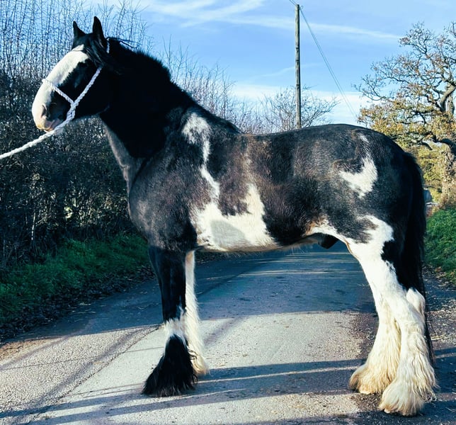 Dieser fünfjährige Shire-Wallach besticht durch seine prächtige und ungewöhnliche Fellfarbe, mehrfarbig – Schwarz, Blau, Braun... sehr einzigartig. Er eignet sich hervorragend als Paradepferd, für Kutschenfahrten oder als beeindruckendes Reitpferd. Er ist bereits professionell für das Fahren ausgebildet, sodass der Übergang zum Reiten bei Bedarf problemlos möglich ist. Er ist ein gutmütiges, kräftiges Pferd, solide gebaut und von angenehmer Größe. Hervorragend. Bitte kontaktieren Sie uns für ein Video. sheila@shiresandclydesdales.com
