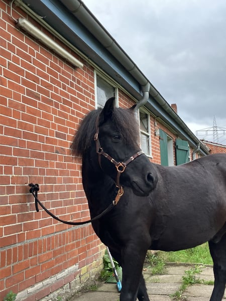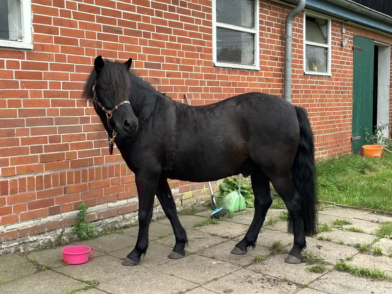 Da sich mein Leben nun doch anders entwickelt als erwartet, habe ich mich dazu entschieden, mich wieder von meinem schwarzen Power-Dülmi zu trennen. Nach einem Sommer Urlaub auf der Weide wird er seit etwa 2 Monaten wieder abgeschoben. Domino hat große Freude daran, etwas mit seinem Menschen zu machen. Zirkuslektionen, Longe und Doppellonge sind eine willkommene Abwechslung zur Platzarbeit. Er ist sehr unerschrocken und reagiert sehr gut auf Stimme, daher könnte ich ihn mir auch gut als Fahrpony vorstellen. Bei seiner vorherigen Besitzerin wurde Domino hauptsächlich im Gelände geritten. Das klappt wunderbar, allein und in der Gruppe. Aktuell muss Domino seinen Sommerbauch noch etwas abtrainieren. Auf dem Platz, in der Dressurarbeit lernt er wirklich schnell und möchte immer gefallen. Den ein oder anderen kleinen Sprung nimmt er mit Begeisterung. Als typisches Pony oder auch Wildpferd hat er seinen eigenen Kopf, daher würde ich Domino nicht als reines Kinder oder Anfängerpony abgeben. Durch seine kompakte Figur deckt er aber auch kleine Erwachsene hervorragend ab. Er ist niemals böse, treten, beißen usw sind ihm fremd, aber er vergewissert sich gern einmal ob alle „Regeln“ dauerhaft gelten;) Er läuft aktuell barfuß und ist super artig beim Schmied. Bei mir steht er in einer reinen Wallach-Herde. Das sollte auch so bleiben, da er bei Stuten leider aufspringt. Insgesamt ein super hübscher Vertreter seiner Rasse und ein toller unverbrauchter Allrounder.