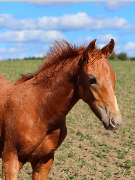 Rudi, geb. 17.05.2025 Wunderschönes, menschenbezogenes Hengstfohlen. Kräftiger Typ mit schönen Grundgangarten. Er ist lieb im Umgang und das Fohlen-ABC sitzt. Halfter, führen, putzen und Hufe geben sind kein Problem. Mutter: Lusitano-PRE Mix (Isabell) Vater: Elite Hengst Nancho's Golden Star, Deutsches-Reitpony (Falbe) Bei Fragen gerne melden! Videos auf Anfrage möglich.