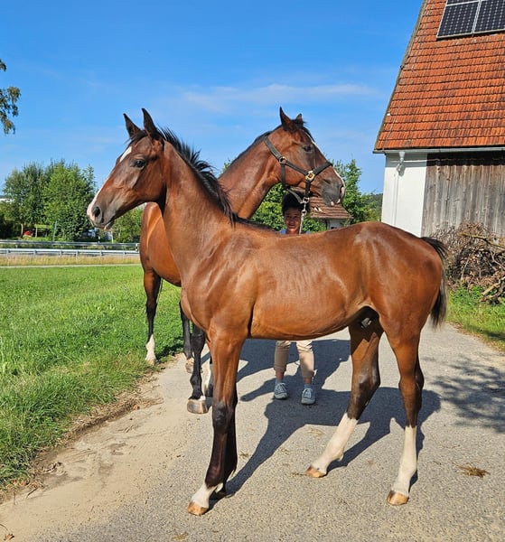 Geboren März 2024. Verkauft wird ein Typstarkes Hengstfohlen mit elastischen schwungvollen GGA, Halbbruder zu FBW Zimtstern. Hengstfohlen Von Primetime x sir Oldenburg Rasse:** Deutsches Sportpferd **Geschlecht:** Hengst **Geburtsjahr:** 2024 **Farbe:** Brauner **Disziplin:** Dressur Wir bieten einen außergewöhnlichen jungen Hengst zum Verkauf an. Dieser vielversprechende Deutsche Sportpferde-Hengst aus dem Jahr 2024 besticht durch seine elegante Erscheinung und sein hervorragendes Potenzial in der Dressur. Der Braune Hengst zeigt bereits jetzt beeindruckende Bewegungen und eine natürliche Anmut, die ihn zu einem zukünftigen Star im Dressurviereck machen könnten. Er ist bestens geeignet für ambitionierte Reiter, die ein talentiertes Nachwuchspferd suchen, um gemeinsam große Erfolge zu feiern. Sein freundliches Wesen und seine Lernbereitschaft machen ihn zu einem angenehmen Partner im täglichen Umgang.. Für weitere Informationen und Besichtigungstermine kontaktieren Sie uns bitte. Wir freuen uns darauf, Ihnen diesen außergewöhnlichen Hengst persönlich vorzustellen. Angaben zum Mutterstamm: Aus mutterstamm kommen mehrere staatsprämien Stuten gekörte Hengste ect.