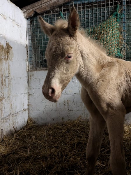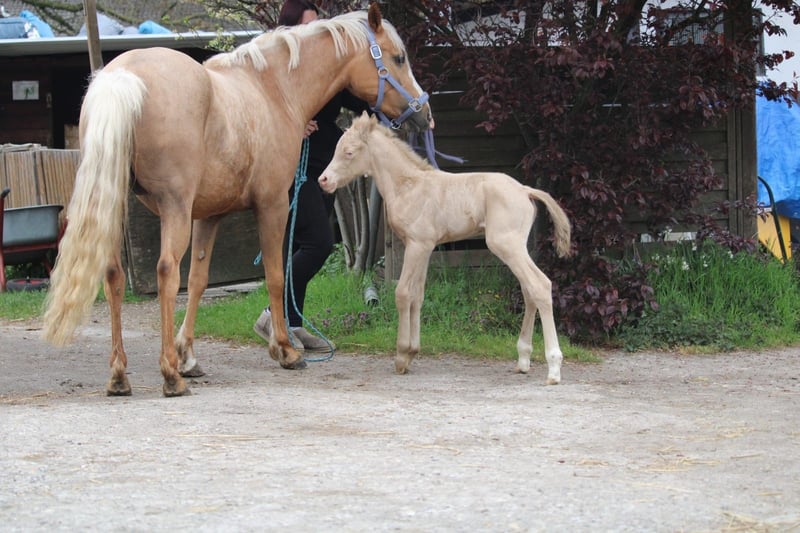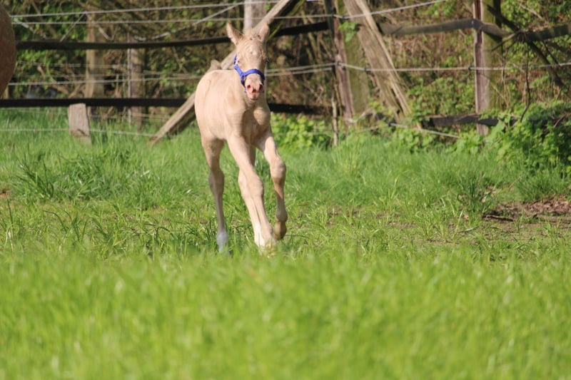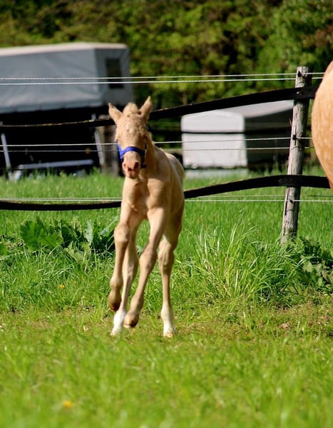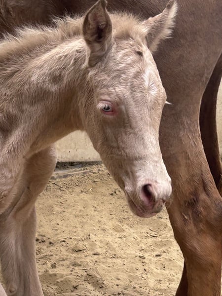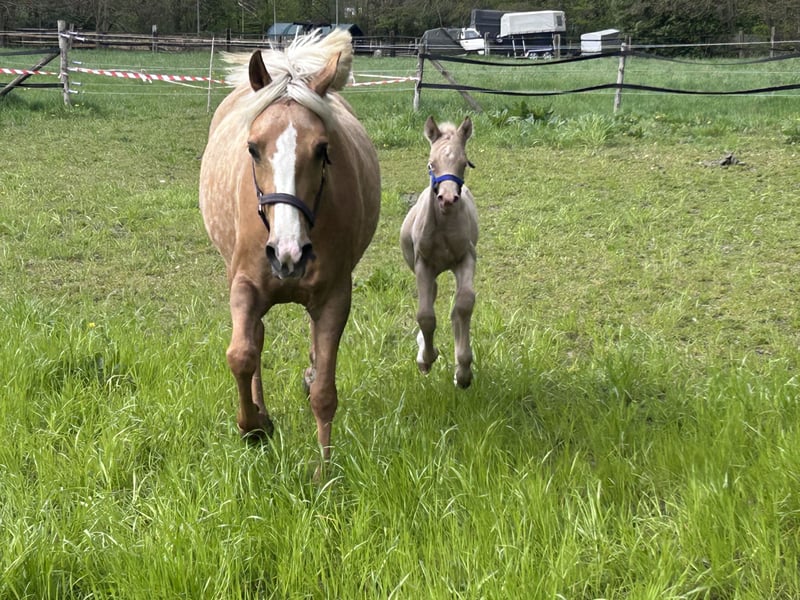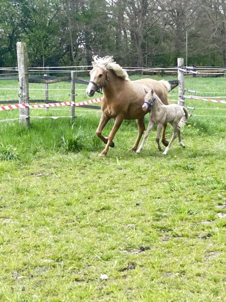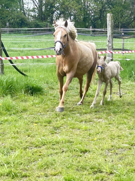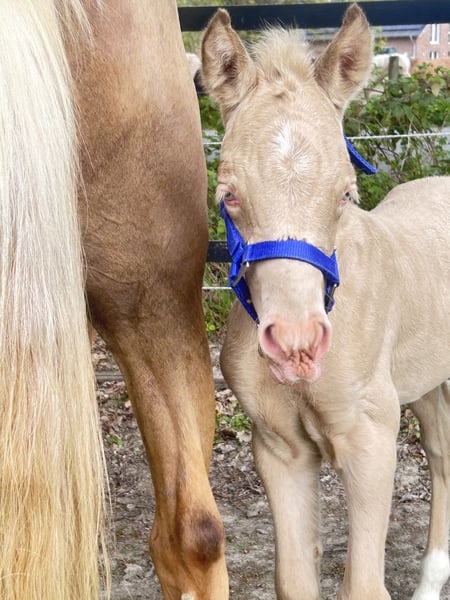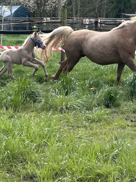 Minaro’s Blue Eyes – exklusives deutsches Reitpony Hengstfohlen in seltener Perlino-Farbe Am 12.04. um 19:45 Uhr hat dieses ganz besondere Hengstfohlen das Licht der Welt erblickt: Minaro’s Blue Eyes – ein echter Blickfang mit seiner außergewöhnlichen Perlino-Farbe und den strahlend blauen Augen. Abstammung: Vater:Centauros Midas ist ein Elite Hengst Mutter: Deleila Schon jetzt zeigt sich der kleine Mann neugierig, aufmerksam und mit einem freundlichen Wesen ausgestattet. Er wächst artgerecht auf, kennt den täglichen Umgang und überzeugt durch seine korrekte Statur sowie seine elegante Erscheinung – beste Voraussetzungen für eine erfolgreiche Zukunft im Sport oder als treuer Freizeitpartner. Bis zu seinem Auszug wird Minaro’s Blue Eyes selbstverständlich altersgerecht aufgezogen und lernt das Fohlen-ABC kennen. Dazu gehören unter anderem: - Halfterführigkeit - Hufe geben - Umgang mit dem Menschen - erste Gewöhnung an Alltagssituationen Wir wünschen uns für ihn ein liebevolles Zuhause mit Pferdeverstand, in dem er weiterhin gefördert und geschätzt wird. Bei ernsthaftem Interesse freuen wir uns über eine Nachricht.