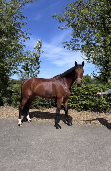Klacz, urodzona w 2015 roku Pilothago x Cornet Obolensky Na sprzedaż piękna i chętna do współpracy klacz o dobrych i bardzo wygodnych podstawowych chody. Corni jest dobrze jeżdżona, chętna do pracy i przyjemnie się z nią pracuje. Obecnie jest w treningu, regularnie jeźdzona i lonżowana. Ze względu na silne przywiązanie do człowieka, chętnie współpracuje z opiekunem, dlatego też mogłaby świetnie sprawdzić się w pracy na ziemi lub jako wszechstronny koń rekreacyjny. Jest łagodna wobec zwierząt i dzieci. Zna jazdę bez siodła i dba o jeźdźca w trakcie. Przebywa w boksie, ale regularnie wypuszczana jest na pastwisko lub paddock. Ze względu na rodowód, może być również interesująca dla hodowli. Jest spokojna w obsłudze i bezproblemowa podczas czyszczenia kopyt oraz załadunku (na ciężarówkę i przyczepę). • regularnie strzyżona przez kowala • zaszczepiona i odrobaczona Corni sprzedawana jest jako wysokiej klasy koń rekreacyjny i szuka kochającego domu. Dobre zdjęcia rentgenowskie z 2024 roku dostępne. W przypadku poważnego zainteresowania chętnie udzielę dodatkowych informacji, zdjęć lub filmów.
