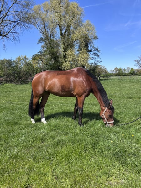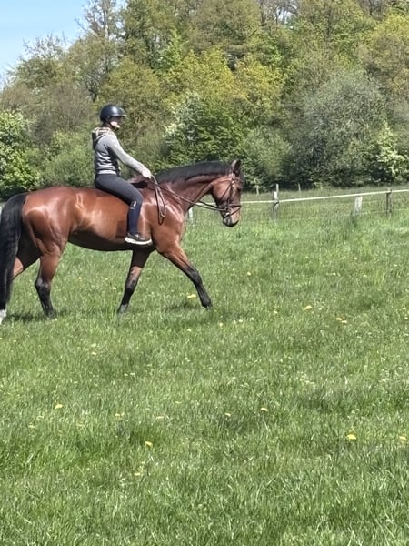 Mare, born in 2015 Pilothago x Cornet Obolensky For sale is a lovely and people-oriented mare with good, very comfortable basic gaits. Corni is rideable, eager to work, and pleasant to handle. She is currently in training, regularly ridden and lunged. Due to her strong bond with humans, she enjoys working with her handler, making her well-suited for ground work or versatile recreational riding. She is kept in box stalls but is always turned out on pasture or paddock. Thanks to her pedigree, she is also interesting for breeding purposes. She is well-behaved in handling and shows no issues with the farrier or loading (truck & trailer). - Regularly hoof care by the farrier - Vaccinated and dewormed Corni is offered as a high-quality leisure horse and is seeking a loving home. Excellent X-ray images from 2024 are available. For serious inquiries, please contact me for more information, photos, or videos.