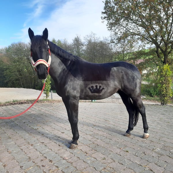 Z powodów osobistych moja klacz Gala jest na sprzedaż. Gala to koń, od którego trzeba zdobyć zaufanie i współpracę. W codziennym kontakcie jest zasadniczo grzeczna, zarówno podczas jazdy w hali, jak i na placu, ale czasami trudno ją zmotywować. W terenie nie stanowi to problemu — chętnie udzielę więcej informacji na ten temat. Obecnie nie jest w treningu i nieco straciła formę, co widać po nadmiarze tłuszczu na jej ciele. Aktualny stan można zobaczyć na ostatnim zdjęciu. Musiałaby więc najpierw zostać ponownie wytrenowana i schudnąć. Chętnie opowiem wszystko szczegółowo w razie zainteresowania — tutaj nie chciałbym się rozpisywać, więc śmiało pytaj.