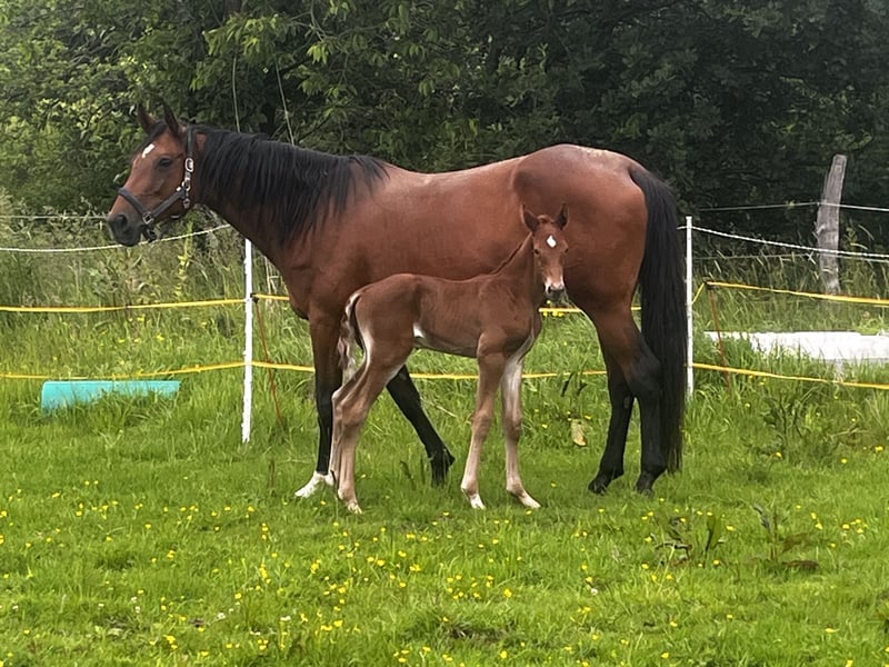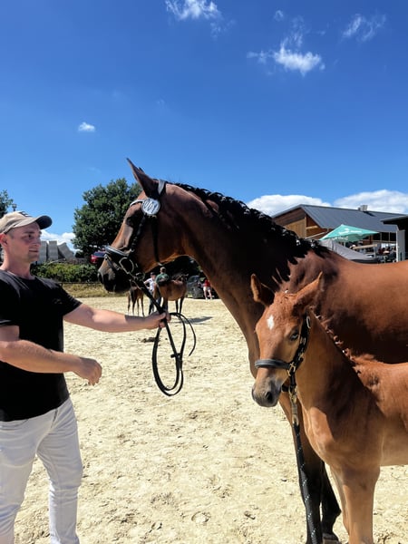 We are offering our main premium mare, Ce la vie, born in 2013. She is by Carrico (Catoki) out of Arpeggio / Francisco I, and was trained in dressage up to level M during her first six years, thanks to her excellent movement dynamics and rideability. Due to a change in her rider and her outstanding pedigree, she was then retired to breeding and has given us five beautiful foals. In the meantime, she was ridden again for a year and also showed talent in show jumping. Currently, she is in foal to Global Dancer, expected to foal around May 12, 2026. Ce la vie is of high rank and possesses a very reliable and honest character. She has been regularly wormed, presented to the farrier, and is loading well. With Ce la vie, all options are open: she is a very loving mother but can also be restarted under saddle and used as a riding horse. The foals from 2024 and 2025 are still in our possession and can be visited on-site. The colt from this year has been approved for the foal championship in Lienen and placed 12th among the jumping-oriented foals. Pocket Rocket MB is also available for purchase. Please feel free to contact me if you are interested.