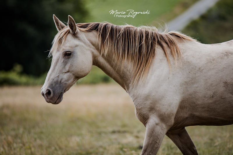 Warmblutstute | Classic Champagne | geb. 2014 | 1,50 m Stutbuch I Genetik: Rappe mit heterozygot Champagne, E/x a/a Ch/n KHREME KHASSIS GF ist eine ruhige, sozial eingebundene Stute mit Überblick und innerer Gelassenheit. Sie ist menschenfreundlich, lernbereit und bewegte sich bisher sicher in stabilen Herdenstrukturen. Sie wurde nicht geritten und ist nicht an regelmäßiges Handling gewöhnt – bietet aber aufgrund ihrer klaren Art und ihrer Abstammung Potenzial sowohl für die Zucht als auch für eine spätere Ausbildung im Freizeitbereich bei geduldigen, erfahrenen Menschen. Vater: RAPPTÄNZER – Oldenburger Dressurblutlinie mit Rubinstein I – Rosenkavalier – Inschallah AA. Erfolgreich bis Grand Prix, mit bewährter Nachzucht Mutter: KHREMISSIMA GF – erste champagnefarbene Stute im Warmblut-Stutbuch I, aus der Palomino Zweibrücker Hauptstutbuchstute MAIGOLD Muttervater: KHALVIN KHLEIN KpM (USA) – Begründer der modernen Champagne-Partbred-Linie in Europa