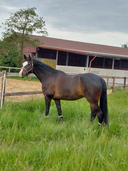 Con gran pesar, buscamos un nuevo hogar adecuado para nuestra yegua nacida en 2011. Tiene una estatura agradable de aproximadamente 1,70 m. Es hija de Lissaro x Laudabilis, por lo que posee una excelente línea de sangre orientada al adiestramiento. En cuanto a carácter, es una verdadera joya: muy amigable, muy tranquila y cautelosa. También es fácil de manejar para niños y jinetes más jóvenes. Destaca principalmente por su carácter excepcionalmente amable y equilibrado: - Muy cercana a las personas - Absolutamente tranquila y cautelosa en su trato - Amigable con los niños y fácil de manejar para jinetes jóvenes - Relajada, amistosa y con una mente clara Debido a una lesión en el tendón en la parte frontal derecha (que ya está curada), la vendemos como un caballo de ocio exclusivamente para la doma. Además, es coprina, lo cual solo se nota cuando come y tiene la posibilidad de colocarla. Nunca hemos tenido problemas con su copra, como cólicos o que nuestros caballos en el establo hayan aprendido algo de ella. La vendemos solo a las mejores manos — preferimos calidad sobre cantidad.