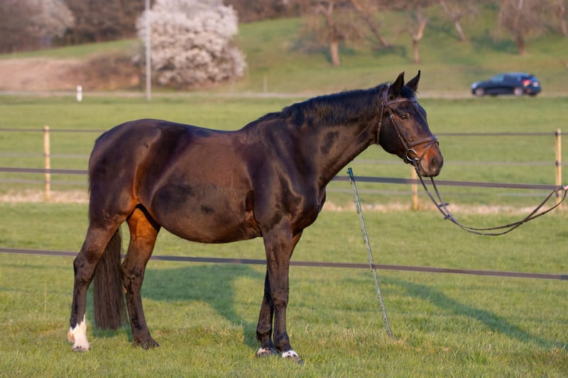 Elegante Dunkelbraune Stute, geb. 2008, mit einem Stockmaß von 165 cm. Dieses vielseitige Freizeitpferd überzeugt durch ihren ausgeglichenen Charakter und ihre zuverlässige Art. Sie ist gut geritten und eignet sich hervorragend für den täglichen Einsatz im Freizeitbereich. Mit ihrer angenehmen Grundausbildung ist sie sowohl für fortgeschrittene Reiter als auch für ambitionierte Freizeitreiter eine angenehme Begleiterin. Ein echtes Allround-Talent, das durch ihr freundliches Wesen und ihre solide Grundausbildung besticht. Sunny lief bei uns nun ca. 4 Jahre im Schulbetrieb mit. Dabei war sie sowohl in der Dressur und auch im Springen immer zuverlässig. Im Gelände ist sie ruhig und ausgeglichen. Stuten Allüren kennt sie nicht. Sie ist immer freundlich und besonders bei Kindern sehr vorsichtig. Wir wünschen uns für sie ein neues Zuhause mit Familienanschluss als treuer Freizeitpartner. Auch für die Zucht wäre sie interessant, da in ihrem Stammbaum der Paradehengst Donnerhall und auch Sandro Hit vorkommen. Chronische Krankheiten sind nicht bekannt. Eine AKU kann durch den Interessenten gerne organisiert und gemacht werden. Bei Interesse stehe ich gern für weitere Informationen und eine Besichtigung zur Verfügung. ** Um Reittourismus entgegen zu wirken, wird beim Probereiten eine Pauschale von 30€ fällig, die beim Kauf gegengerechnet werden kann.