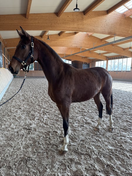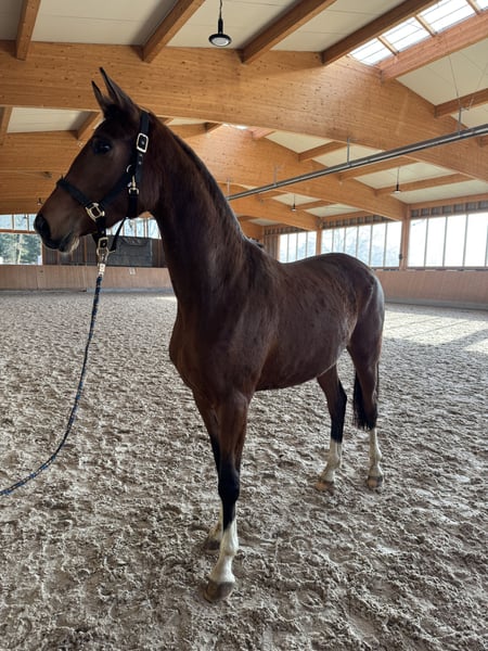 Diese auffällig elastische 3-Jährige Stute sucht aufgrund weiterer Nachzucht einen Bestplatz! Die Mutter selbst war mehrfach in GP*** siegreich. Die Stute ist anlongiert, kennt den täglichen Umgang im Stall und zeigt sich dort sehr lernwillig! Aktuelle Röntgenbilder sind vorhanden. Weitere Videos können angefragt werden.