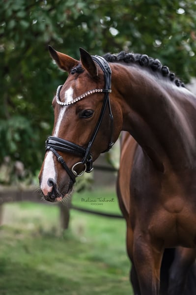 Deze typvolle en beeldschone merrie overtuigt door haar uitstekende afstamming, haar geweldige karakter en haar kwaliteit in alle drie basisgangen. Ze komt uit een sportief succesvolle moederlijn met nakomelingen tot S-niveau, deelname aan het Bundeschampionat tot de finale en een goedgekeurde hengst. Ze beschikt over drie goede basisgangen, is altijd gemotiveerd, leergierig en laat zich daarbij probleemloos door meisjes rijden (video beschikbaar bij serieuze interesse). Ze is nu klaar voor haar verdere opleidingsweg. Een echte partner met veel perspectief voor opleiding en wedstrijdsport. In de omgang is ze braaf, ongecompliceerd en mensgericht. Ze loopt momenteel zonder hoefijzers en is klinisch en röntgenologisch zonder bevindingen (TÜV obB), het protocol kan bij serieuze interesse worden ingezien. Een jong paard met uitstekende aanleg, dat nu een stimulerende hand zoekt! Voor het proefrijden vragen we 30€, die uiteraard met de aankoopprijs worden verrekend.
