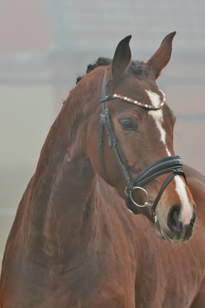 Zazou ist ein interessantes Nachwuchspferd für Sport und Zucht. Diese modern aufgemachte Stute präsentiert sich ausdrucksstark mit drei überzeugenden Grundgangarten. Besonders hervorzuheben ist der sehr raumgreifende Schritt mit viel Übertritt. Der Galopp ist bergauf angelegt und von guter Qualität, während der Trab durch Takt und Gleichmaß besticht. Zazou wurde schonend an die Arbeit herangeführt und zeigt sich hier mit sehr guter Arbeitseinstellung und gibt dem Reiter stets ein gutes Gefühl. Sie benötigt noch etwas Zeit zur Entwicklung, bringt jedoch beste Voraussetzungen mit, ihr Potenzial voll zu entfalten. Sie überzeugt als sensibles, ehrliches Nachwuchspferd mit positivem Go und einwandfreiem Interieur. Besonders interessant ist auch ihre Abstammung. Zazou ist die Halbschwester des erfolgreichen Deckhengstes Baccardi, der als Vierjähriger Bundeschampion wurde sowie fünf- und sechsjährig Finalist beim Bundeschampionat und bei der Weltmeisterschaft war und inzwischen bis zur schweren Klasse erfolgreich ist. Pk: 20-25