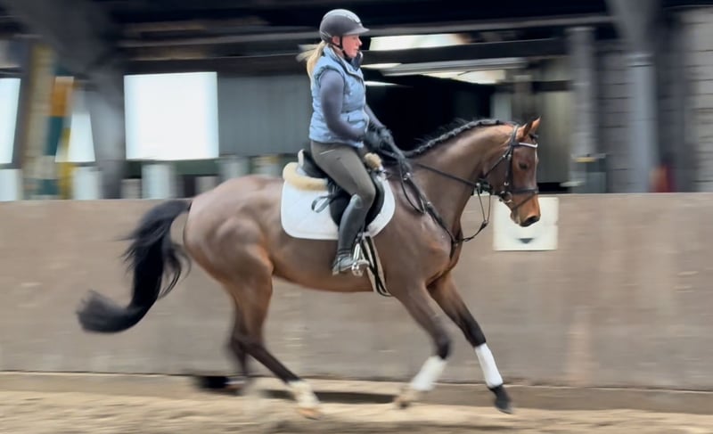 Mettiamo in vendita una cavalla da equitazione tedesca bella e talentuosa. Questa giovane cavalla colpisce per la sua eccellente capacità di salto e mostra un grande potenziale per il salto ostacoli. È ben addestrata, orientata alle persone e pronta a nuove sfide. Ideale per cavalieri ambiziosi alla ricerca di un cavallo affidabile e orientato alle prestazioni. Se siete interessati e desiderate ulteriori informazioni, non esitate a contattarci!