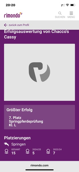 Zum Verkauf steht Chaccos Cassy, eine 7-jährige Westfalen-Stute von Chacco’s Son aus einer Check In-Mutter. Die Stute überzeugt mit sehr viel Vermögen, großem Galopp und einer hervorragenden Einstellung – sie will immer auf die andere Seite. Aufgrund ihres Rahmens und ihrer Kraft ideal auch für größere Reiter. Erfolge & Ausbildung Springpferde A siegreich Springpferde L platziert A- und L-Springen mit Amateur geritten und platziert Ehrlich, leistungsbereit und vorsichtig Exterieur Stockmaß ca. 1,75 m Großlinig, sportlich, modern Röntgen Aktueller Röntgenbericht (06/2024, 21 Aufnahmen) liegt vor. Befunde im Bereich der Hufrolle/Strahlbein sowie kleine dorsale Fragmente an beiden Vorderbeinen. Sprung-, Knie- und Kootgelenke ohne Befund. Die Stute ist im Sport vorgestellt, leistungsbereit und zeigt sich ohne Einschränkungen. Aufgrund der Befunde wird sie weit unter Wert abgegeben – interessante Gelegenheit für realistische Käufer. Video: auf Anfrage