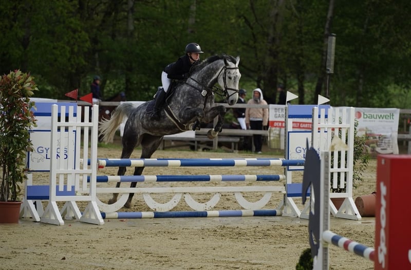 Zum Verkauf steht eine talentierte Schimmelstute, geboren 2018, mit einem Stockmaß von ca. 1,74 m. Sie überzeugt durch ihren lieben und unkomplizierten Charakter – sowohl im täglichen Umgang als auch beim Reiten. Keine Unarten, stets brav und zuverlässig. Aufgrund ihrer Größe braucht sie noch etwas Zeit, um vollständig in ihren Körper hineinzuwachsen. Sportlich zeigt sie jedoch bereits jetzt ihr Potenzial. Einige Platzierungen und Siege in Springprüfungen der Klasse A und L kann sie vorweisen. Ihr Vermögen reicht für mehr – im Parcours hat sie viel Go, deshalb benötigt sie einen erfahrenen Reiter. Sie ist ehrgeizig und absolut zuverlässig, stehenbleiben kennt sie nicht. Auch zu Hause geht sie sicher im Gelände, egal ob alleine oder in der Gruppe. Eine ideale Partnerin für ambitionierte Reiter, die ein talentiertes und ehrliches Pferd für den Springsport suchen