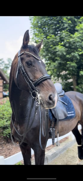 For sale is a 1.63m tall gelding born in 2014. He is sired by Sezuan, with Horizont Firfod as his dam's sire. He has placed in M* and competed in M**. A video can be sent upon request via WhatsApp. For more information and to schedule a trial, please contact: 017661403273.