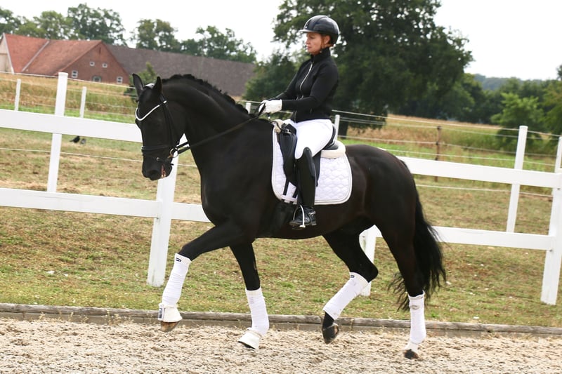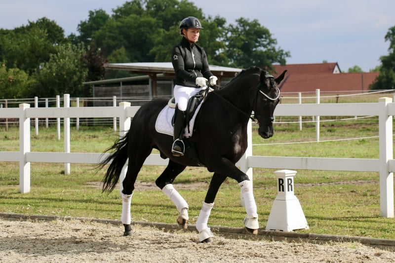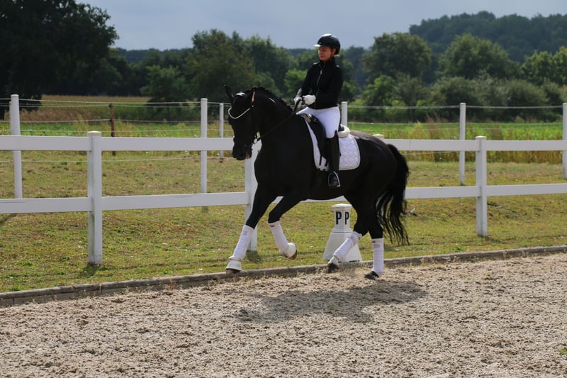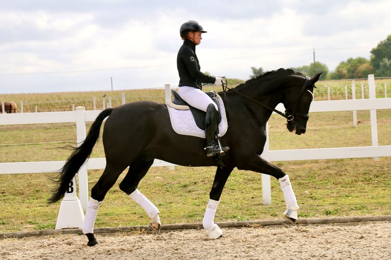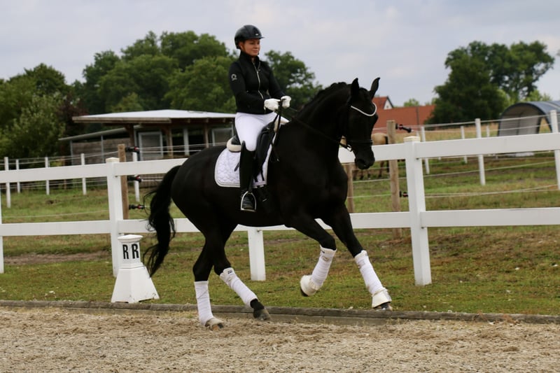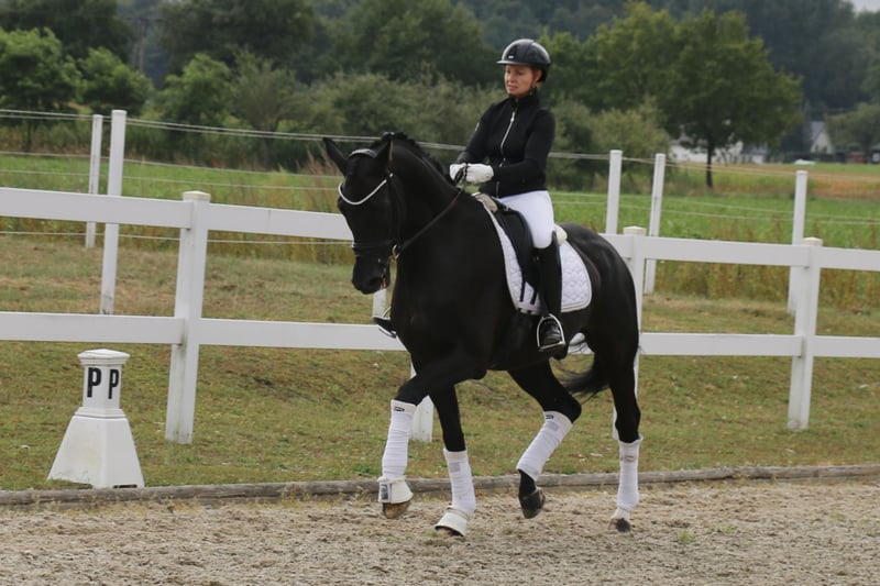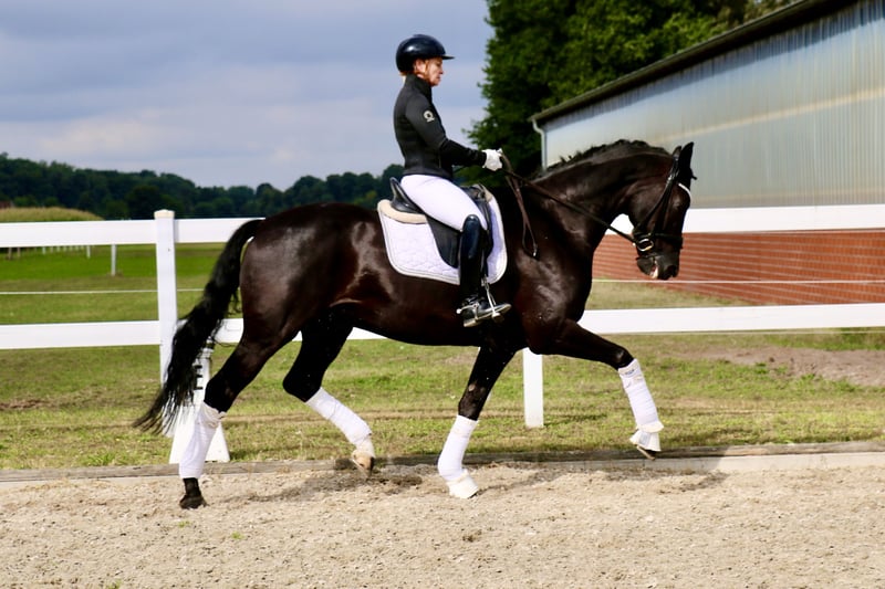 | Westphalian | Gelding | Black | *2013 | 172 cm | s. First Selection x Abanos “Fürst Fijou” is an absolutely lovable gelding with a lot of charm. “Fijou” impresses not only with his extremely stylish appearance but also with three very good basic gaits. The gelding is very well-behaved and uncomplicated both under saddle and in handling, making him suitable for less experienced riders. “Fürst Fijou” has placements in E-L dressage. He can be easily handled by weaker riders even at competitions. In group tests, he takes the lead, as well as in the section. In training, “Fijou” is already performing the exercises of class M, although these still need some refinement. Besides his dressage work, Fijou loves to jump smaller courses or go out on trails. “Fürst Fijou” is suitable for beginners or for more experienced riders who want to start competing right away. A radiological examination from the end of August 2025 is free of findings. https://youtu.be/pamGlI0YTq8?si=4S2pMC1jMph3PWU2 https://youtu.be/pamGlI0YTq8?si=4S2pMC1jMph3PWU2 For serious inquiries, please feel free to contact us by phone at +491707941333.