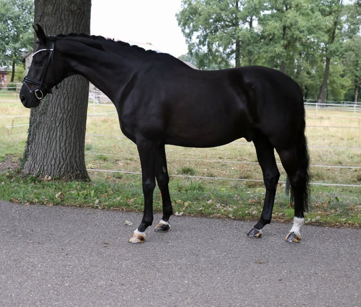 | Westphalian | Gelding | Black | *2013 | 16.1 hh | Sire: First Selection x Abanos "Fürst Fijou" is a truly lovable gelding with a lot of charm. Besides his very elegant appearance, "Fijou" impresses with three very good basic gaits. The gelding is absolutely well-behaved and uncomplicated both under saddle and in handling, making him suitable for riders with less experience. "Fürst Fijou" has achieved placings in E-, L- and Medium-level dressage competitions. He is also easy to handle at competitions, even with less experienced riders. In team tests, he often leads from the front, as he does in training. "Fijou" already performs the movements of class M, although these need further refinement. In addition to dressage work, Fijou enjoys jumping small courses or being ridden in the terrain. "Fürst Fijou" is suitable for beginners or more experienced riders who want to start competing right away. A recent X-ray examination from the end of August 2025 is available and shows no findings. https://youtu.be/pamGlI0YTq8?si=4S2pMC1jMph3PWU2 For serious inquiries, please contact us by phone at +49 170 7941333.