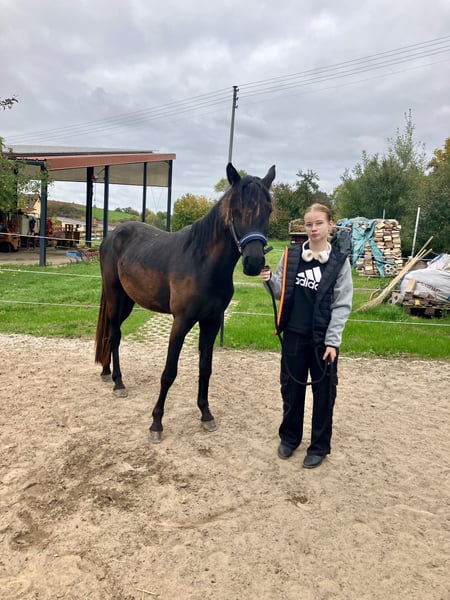 Verkaufe deutsches Reitpferd – Dunkelbrauner Wallach, geboren 2023 Zum Verkauf steht ein vielversprechendes deutsches Reitpferd, ein hübscher Dunkelbrauner Wallach, der im Jahr 2023 geboren wurde. Mit einem Stockmaß von aktuell 150 cm ist er für den Dressursport geeignet und zeigt bereits jetzt viel Lernbereitschaft. Der junge Wallach überzeugt durch seine elegante Erscheinung, und sein freundliches Wesen. Er ist gut sozialisiert.Er hat ein großes Bedürfnis an freier Bewegung. Er ist Temperamentvoll. Braucht viel Bewegung dann ist er zufrieden und ausgeglichen. Dieses Pferd ist die perfekte Wahl für ambitionierte Reiter, die ein vielversprechendes Nachwuchspferd suchen, um gemeinsam durchzustarten. Bei Interesse oder für weitere Informationen stehe ich Ihnen gerne zur Verfügung.