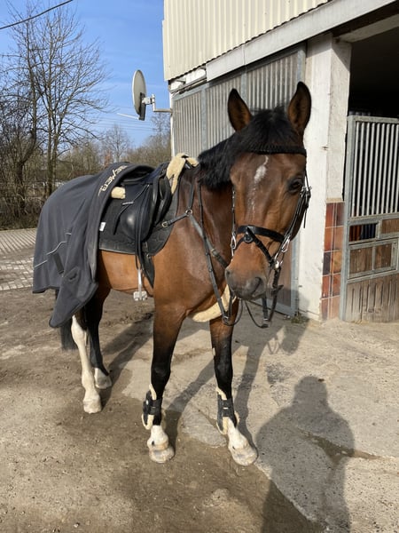 For sale is my 9-year-old stallion, Stubbenhof’s Colorado. He has been in my possession for about a year. Colorado is a very relaxed horse you can always rely on. Being a stallion is not noticeable in his behavior; he has stood calmly next to mares both at home in the stable and during overnight competitions for several days without any issues. Dressage-wise, he is very pleasant to ride. He is also very reliable in jumping, always giving his best and striving to avoid mistakes. He has been ridden occasionally by children and absolute beginners, successfully guiding them through their first lead-rein classes (videos available upon request). I have learned a lot from him, but unfortunately, due to health reasons, I have to part with my horses. Please feel free to contact me if you have any questions :)