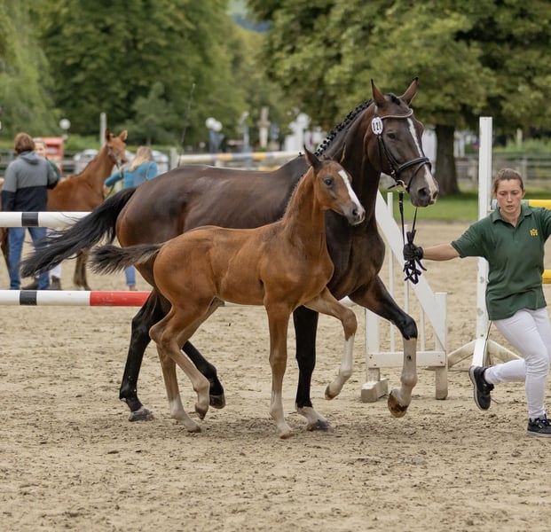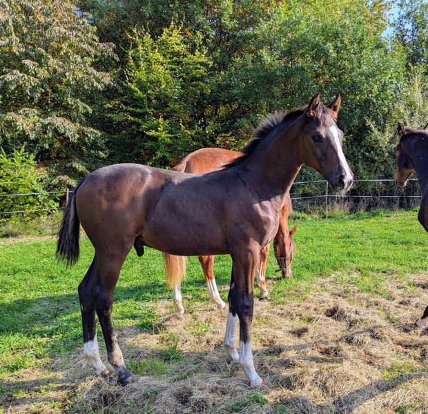 We are seeking a nurturing 5-star home for our highly promising DSP colt (born June 2025). This foal combines everything one could wish for in terms of both breeding potential and athletic future. At the foal inspection, he was awarded the winner's title amidst strong competition, impressing with his outstanding quality. His sire is the renowned Sir Heinrich, former Bundeschampion of the 6-year-old dressage horses and multiple S-level winner. He descends from highly successful dressage bloodlines and was a World Championship participant in 2014. This foal also reflects the inherited strength, rideability, and charisma characteristic of his pedigree. On the dam’s side, the Floratio x Dancier lineage promises a high performance potential and enormous talent. He possesses powerful basic gaits, with particular emphasis on his ground-covering walk. Additionally, he demonstrates a very elastic trot with significant hind leg activity and expressive, energetic movement, as well as a strong uphill tendency in canter. A true gem for dressage and a highly interesting candidate for licensing as a stallion! A solid foundation and a typy appearance complete his potential. But even at this young age, his temperament already impresses. He displays a calm, trusting nature and is very affectionate. He is familiar with the foal’s basic training (Foal-ABC) and approaches everything with calm curiosity and confidence. The price reflects his quality, but for us, the well-being of the horse comes first. A personal introduction to the foal is always possible and highly encouraged. We kindly ask for serious inquiries only; video requests without personal contact will be ignored. Feel free to contact us by phone for further questions or to arrange a viewing.
