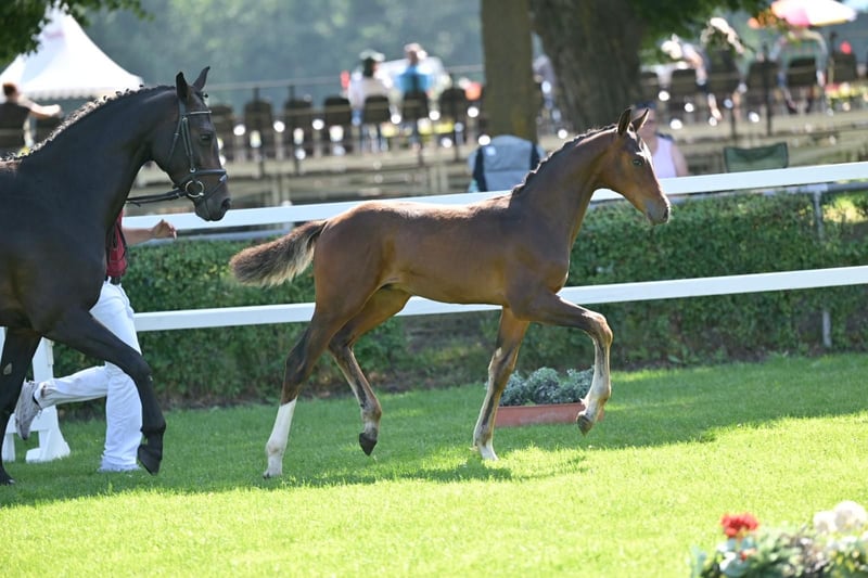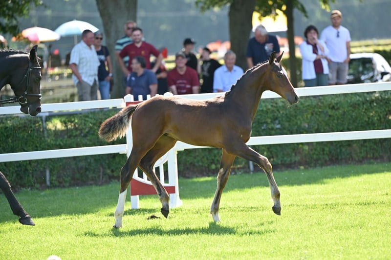 From a renowned breeding farm, bay colt, * April 15, 2025 sired by Cape Calidus-Contendro II-Acomet-Nariston-Grundstein II-Werther's Erbe Winner of the foal show PZV Calvörde, 1st reserve champion brilliant ring DSP foal championship show jumpers Neustadt (Dosse) Mother, grandmother, and great-grandmother successful in show jumping and each awarded premium mares. https://www.horsetelex.de/horses/pedigree/2671299/cape-contendro If you are interested or have further questions, we look forward to your message. Don't miss this opportunity! 0171/7545864.