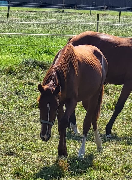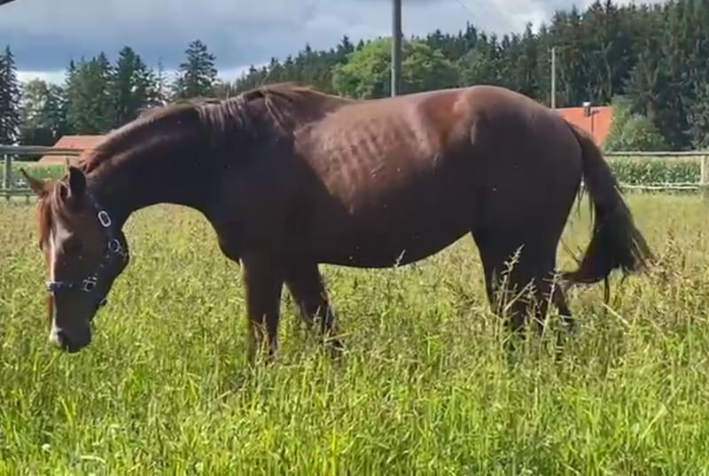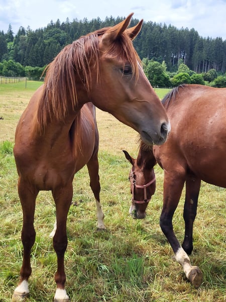 Wir verkaufen unseren derzeit 2-jährigen Dunkelfuchs-Hengst, geb. am 17.05.2023. Er stammt ab von Va Bene (Zuchthof Wadenspanner) aus einer Mutter von Floricello x Fidertanz x Donnerschwee. Sein momentanes Stockmaß ist 1,60 m. Er hat drei sehr gute Grundgangarten (s. Video), ist menschenbezogen und absolut klar im Kopf. Er steht in einer Hengstaufzucht, in der er bis Ende Sommer 2026 bleiben kann.