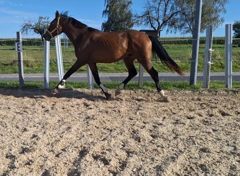 For Sale: German Sport Horse Stallion – Born 2023 We are offering a promising German sport horse stallion, born in 2023. This bay horse impresses with its elegant appearance and outstanding potential in dressage. Standing at 16.1 hh, he is the perfect size for ambitious riders seeking a reliable partner for the future. His gentle temperament makes him appealing to both experienced riders and talented young riders. If you are interested or have further questions, please feel free to contact me. I would be happy to arrange a viewing and a chance to get to know him!