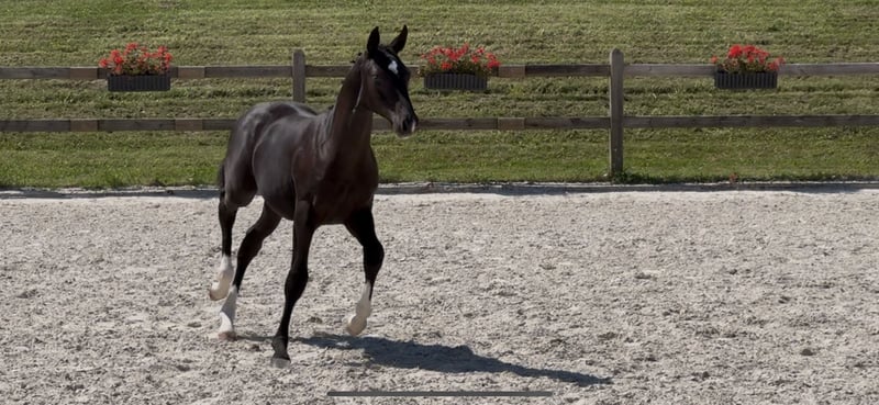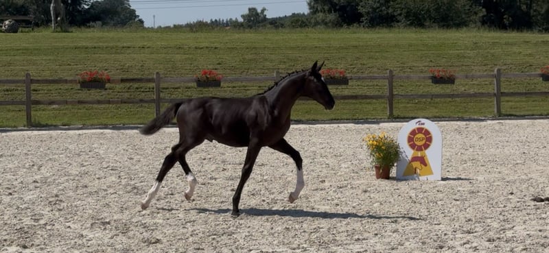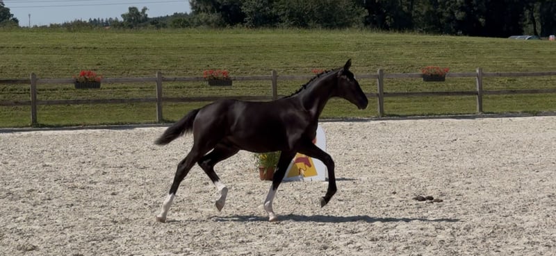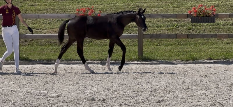 Zu Verkauf steht unser typvolles Hengstfohlen von St. Emilion, welcher keine Wünsche offen lässt. Wurde Prämienfohlen mit 43 Punkten. Standing Ovations ist am 09.04.2025 geboren. Er steht sehr korrekt auf den Beinen, hat einen lieben Charakter und verfügt über drei sehr gute GGAs, insbesondere der Schritt ist hervorzuheben. Er ist bereits verladefromm und lässt sich auch von Kindern führen. Die Mutter ist eine Staatsprämienstute von Abanos x Donnerschlag x Freiherr. Sie absolvierte eine ordentliche Stutenleistungsprüfung und wurde im jungen Jahren Goldprämienfohlen und gewann den Zukunftspreis der zweijährigen Stuten in München-Riem. Erst vergangenen Jahres ging die Stute mit ihren 22 Jahren noch Turnier, was für ihre Leistungsbereitschaft und Vorallem bewährte Haltbarkeit spricht. Zwei weitere Töchter der Stute können vor Ort besichtigt werden. Der Kleine beherrscht das komplette Fohlen ABC. Halftern, führen, spazieren gehen und Hufe geben… Wir wünschen uns für Ihn einen tollen Platz, wo er entsprechend gefördert wird, jedoch nicht nur als Sportpferd gesehen wird.