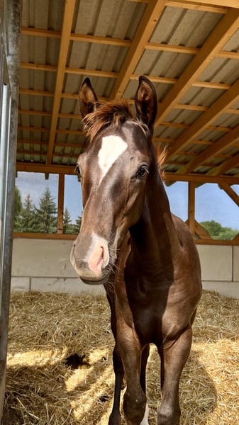 vrai alezan foncé ! Poulain hongre de Livaldon issu de notre De Chocolate – un cheval de cœur avec un avenir. Ce jeune alezan foncé possède toutes les qualités que nous attendons d'un cheval de sport moderne : une belle silhouette, des lignes claires, de très bonnes allures de base – et ce petit quelque chose dans l'expression. Son père, Livaldon, était un étalon primé du Haras de Celle, performant jusqu'en classe S et connu pour sa descendance typée avec une bonne montabilité et une belle présence. Nous sommes d'autant plus ravis que notre poulain fait partie des dernières générations de cet étalon exceptionnel. La mère, notre fiable De Chocolate, apporte toujours une bonne base, une bonne santé et de belles mouvements. Ses précédents poulains ont trouvé des foyers aimants et s'y développent très bien – quelque chose qui nous tient particulièrement à cœur. Notre petit étalon se montre amical, curieux et très agréable au quotidien. Il grandit de manière appropriée en troupeau et a le temps de se développer tranquillement chez nous. Nous souhaitons pour lui un foyer où il sera encouragé – avec patience, un regard affectueux sur ses qualités et la volonté de le voir comme un partenaire, et non seulement comme un projet. Pour plus d'infos, des photos et une première vidéo, vous pouvez consulter notre site web. https://abraxans.com/verkaufspferde/hf-von-livaldon-2025/