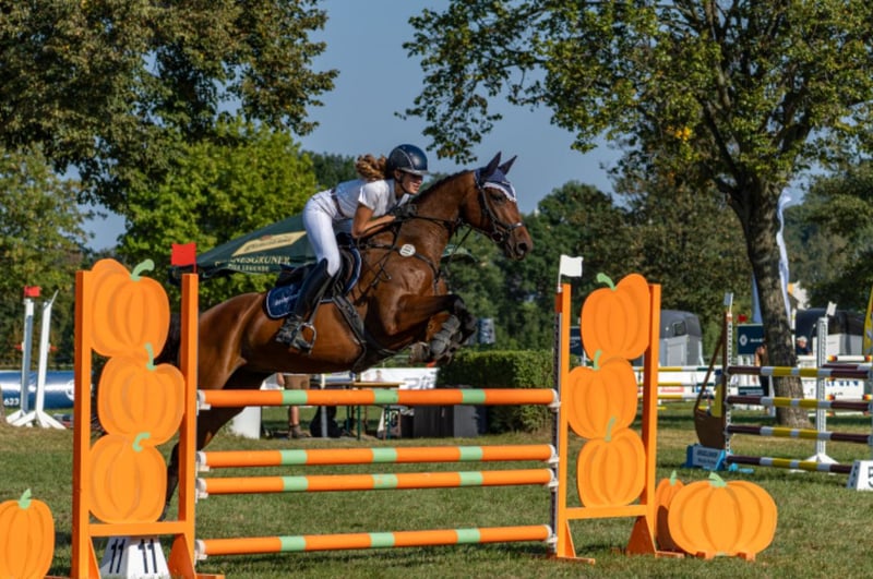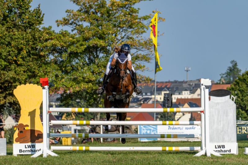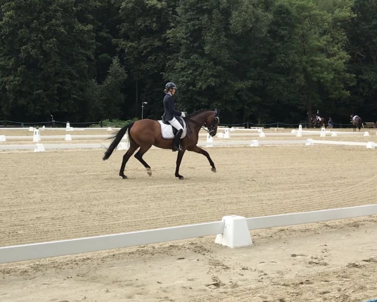 Wings of hope oder auch Hope genannt, ist eine 10 jährige braune Deutsche Sportpferde Stute, von Osharin‘s Peron x Caprilli. In der Dressur ist sie bis zur Klasse M** vorgestellt worden und bis zur Klasse A platzier. Lektionen der Klasse S beherrscht sie auch, wie Piaff, Passage und Pirouetten. Im Springen ist Sie siegreich bis zur Klasse L und springt auch mal ein M Parcours im Training. Im Parcours möchte sie immer auf die andere Seite und hat auch go nach vorne, den man aber gut Händeln kann. Sie ist toll zu reiten, möchte immer gefallen und ist ein super Lehrmeister der auch Fehler verzeiht. Hope sucht einen neuen Partner, der schon etwas erfahrener ist und gut klar kommt, wenn das Pferd mal etwas schneller wird (daher kein Anfängerpferd). Sie ist das perfekte Umsteiger Pferd von Pony auf Großpferd mit ihrem Stockmaß von 1,60m.