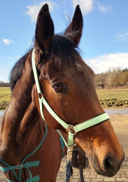 Traumhafte Stute mit Herz aus Gold – brav, nervenstark & vielseitig Zum Verkauf steht eine sehr schicke Stute mit ausgezeichnetem Charakter, die ihrem Reiter viel Spaß und Freude bereitet. Sie ist ein absolutes Traumpferd für den Freizeitbereich und mehr – ideal für ambitionierte Freizeitreiter/innen, aber auch gut für Anfänger geeignet. Die Stute befindet sich seit über 5 Jahren in unserem Besitz und hat sich in dieser Zeit als äußerst zuverlässig, nervenstark und vertrauensvoll erwiesen. Sie sucht aktiv die Kommunikation mit dem Reiter und arbeitet stets motiviert und lernfreudig mit. Im täglichen Umgang zeigt sie sich lieb, menschenbezogen und freundlich, außerdem ist sie schmiede- und verladefromm. Sie wird nahezu täglich geritten und befindet sich in einem sehr guten Trainingszustand. Aktuell wird sie abwechselnd von mir und meiner Frau geritten. Unter dem Sattel ist sie angenehm zu reiten, zuverlässig im Gelände und stets brav. Die Ausbildung reicht bis Dressur Klasse L, Turniererfahrung liegt nicht vor. Die Stute ist gesund, regelmäßig entwurmt und derzeit 4-fach beschlagen (vorne und hinten). Ein ehrliches, feinfühliges Pferd mit goldenem Herzen, das seinem neuen Besitzer viel Freude bereiten wird.