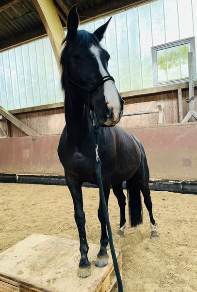 Für meine 10‑jährige Stute Blanka "Blac de Noir", ein deutsches Sportpferd mit sehr guter Abstammung, suche ich ein neues, kompetentes Zuhause. Sie ist 1,62 m groß, gesund, regelmäßig geimpft, zahnärztlich versorgt und barhuf unterwegs. Schmied- und Verladeaktionen meistert sie brav und zuverlässig. 🐴 Charakter & Verhalten Blanka ist eine Stute mit viel Herz, Sensibilität und Ausdruck. Sie braucht jedoch einen erfahrenen, ruhigen Reiter, der ihr Sicherheit vermittelt. Hat sie Vertrauen gefasst, zeigt sie sich als liebes Pferd, das sich auf ihren Menschen einlässt, solange sie klare, ruhige Hilfen bekommt. Sie zeigt keine Unarten wie Steigen, Buckeln oder Beißen. Allerdings ist sie nicht immer unkompliziert: Wenn sie gestresst ist oder sich überfordert fühlt, beginnt sie manchmal zu tänzeln und sucht Orientierung. Mit Konsequenz in Kombination mit einer ruhigen, klaren Art wird dieses Verhalten jedoch zunehmend besser. Sie reagiert sehr positiv auf Menschen, die gelassen bleiben und ihr Sicherheit geben.. 🌿 Ausbildung & Können Früher Jagden gegangen – sie kennt also Trubel und verschiedene Umgebungen, allerdings hatte ich immer den Eindruck, dass solche Situationen für sie eher herausfordernd waren und sie sich in ruhigeren Rahmen wohler fühlt Beherrscht mehr Dressurlektionen, als ich selbst reiten kann Arbeitet zuverlässig, wenn sie Sicherheit bekommt Mag Bodenarbeit und kennt Gelassenheitstraining Im Gelände etwas schreckhaft, daher nur für sichere Reiter geeignet Galopp aktuell noch unausbalanciert, wie auf den Videos zu sehen Nicht für Kinder geeignet 🐎 Haltung Blanka lebt derzeit tagsüber draußen und nachts in der Box innerhalb einer Stutenherde. Diese Haltung tut ihr gut, sie ist sozial und verträglich. Ich kann mir jedoch gut vorstellen, dass auch eine Offenstallhaltung für sie passend wäre 🌸 Zucht – besonders hervorzuheben Blanka bringt eine hochwertige Abstammung mit, die sie für die Zucht sehr interessant macht. Ihre Linien, ihr Exterieur und ihr Charakter bieten eine solide Grundlage für eine spätere Zuchtkarriere. Für jemanden, der ein sensibles, typvolles und korrekt gebautes Pferd mit guter Herkunft sucht, könnte sie eine wertvolle Ergänzung sein. 💛 Warum ich sie abgebe Blanka hat sich im letzten Jahr positiv entwickelt, und ich bin stolz auf die Fortschritte, die sie gemacht hat. Leider lässt meine private Situation mit vier Kindern mir nicht die Ruhe, Zeit und Sicherheit, die sie braucht. Ich selbst möchte rein freizeitmäßig arbeiten und kann ihr nicht immer die konstante Führung geben, die für sie wichtig wäre. 💛 Für wen ist Blanka geeignet? Für jemanden, der: Erfahrung mit sensiblen Pferden hat Freude an feiner Kommunikation und Weiterentwicklung mitbringt Sicherheit ausstrahlt und klare, ruhige Hilfen gibt Ein Pferd sucht, das mit Vertrauen zu einer wunderbaren Partnerin wird Eventuell auch zuchtinteressiert ist