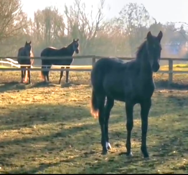 Powerful filly by DSP Dream Royal For sale is a dressage-bred filly Pedigree Sire: DSP Dream Royal Dam: State Premium Mare Fürst Romancier x D'Olympic x Rubinstern - Born: May 2025 - Will be black - Estimated final height: 1.70 m The pedigree combines the guarantees of dressage sport. "Overall, this is a horse where one can envision a great career both in breeding and especially in sport!" Our filly stands in a modern & athletic type, presenting an extraordinary charisma, a great topline, a very good neck, and an elegant head. She shows light, airy movements and an active hindquarters. At the championship, her correct foundation, type, as well as her interior, exterior, and movement were rated highly by the judging panel. Her sire is stationed at Gestüt Sprehe. He is the champion stallion of the DSP licensing in Munich. The dam has the state premium title and has presented several excellent winning foals in recent years, including one licensed stallion. Video can be sent upon request. Initial contact preferred via WhatsApp or by phone at 0172 4020355.