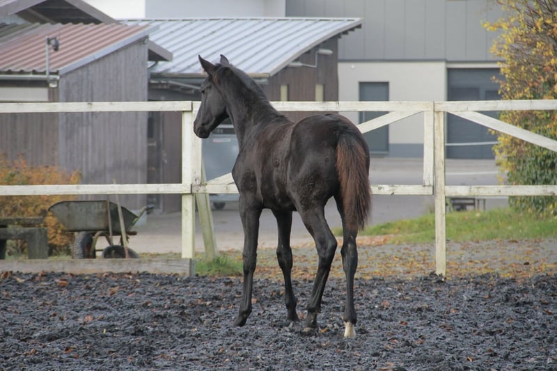Wir bieten hier ein wunderschönes, bewegungsstarkes Stutfohlen mit allerbestem Charakter an, unglaublich unkompliziert, lieb und verschmust - freut sich immer wenn der Mensch kommt. Tiana besticht außerdem durch ein absolut korrektes und stabiles Fundament und 3 völlig klare und korrekte GGA, wodurch die besten Voraussetzungen für lange Gesundheit und Haltbarkeit gegeben sind. Mutter und Halbschwester können besichtigt werden und bestätigen dies, ebenso wie der Halbbruder der letztes Jahr gekört wurde! Beide Geschwister waren auch super brav und einfach beim anreiten! Tiana wurde am 14.06.2025 geboren und war bereits in dem jungen Alter auf der Fohlenschau sehr lieb und unkompliziert - auf dem jüngeren Video ist sie erst 4 Wochen alt! Trotzdem hat sie bereits eine Silberprämie vom Verband erhalten! Sie ist natürlich bereits halfterführig, kennt das Fohlen-ABC und ist mit ihrer Mutter zusammen schon Hänger gefahren. Auch die ersten Ausritte bei Fuß ihrer Mutter hat sie schon völlig souverän und unerschrocken gemeistert. Geschätzt wird sie ca. 170cm groß. Wir wünschen uns eine liebevolle und artgerechte Aufzucht und können sie uns später in verschiedenen Bereichen vorstellen, wobei ihr das Dressurtalent von ihrem Vater natürlich in die Wiege gelegt ist. Bei Bedarf kann sie nach dem Absetzen auch gern ins neue Zuhause gebracht werden. Standort ist 69151. Gern einfach melden und vorbeikommen, hier wächst eine ganz tolle junge Dame heran!