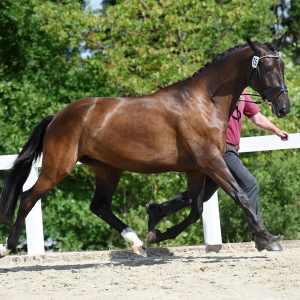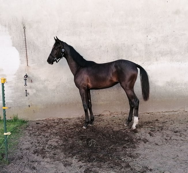 REGENTIN *4/2024 Final height approximately 170cm Regularly vaccinated, dewormed, introduced to the farrier Healthy, minor cosmetic flaws on the hind limbs (windgalls) Leads well in a halter, good with the farrier and loading From an excellent mare line, therefore suitable for both sport and breeding Sire: Indian Summer (Picture 2) Dam: Romanze (Picture 3) by Cadeau Noir Due to lack of time, selling below value For further questions, I can be reached at 01786977102.